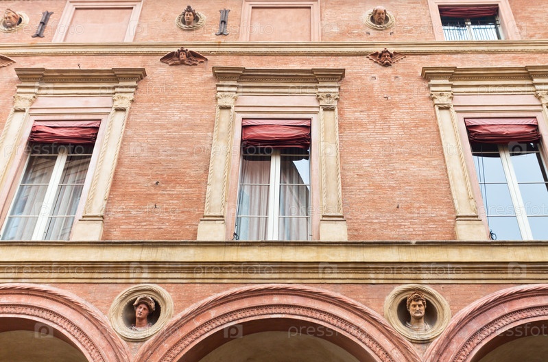 Фасад средневековых домов в городе Болонья