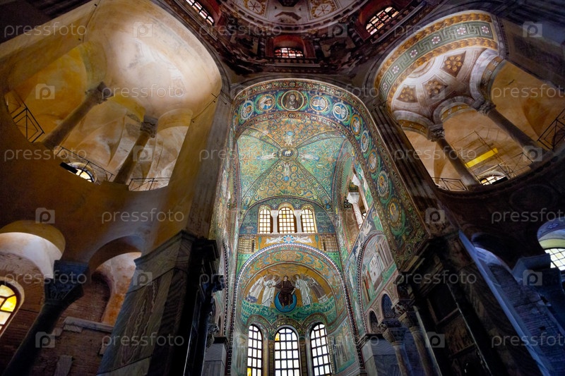 Зеленый мозаичный потолок в Базилике Сан-Витале в Равенне