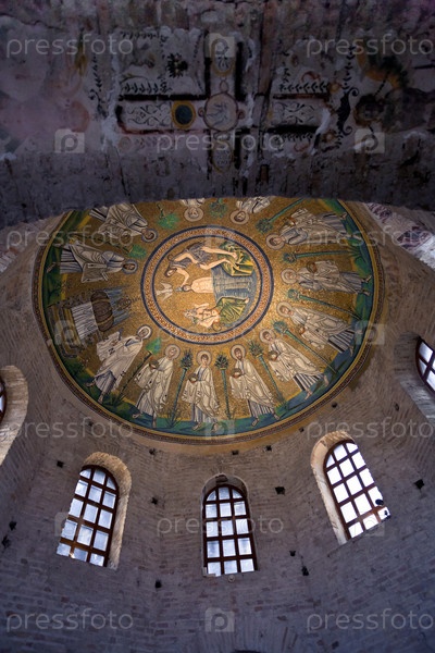 Мозаичный потолок в Баптистерии Ариана и древний христианский крест