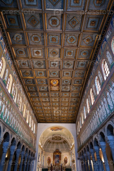Деревянный потолок нефа в церкви Святого Аполлинария Нуово в г. Равенна