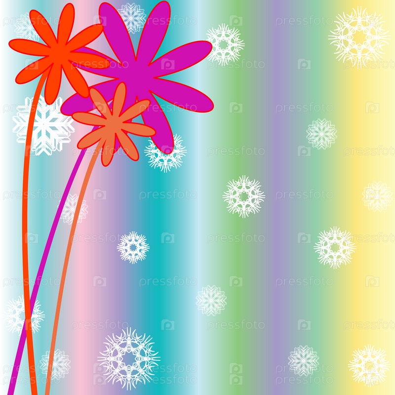 Рождественский фон со снежинками, цветами и полосами