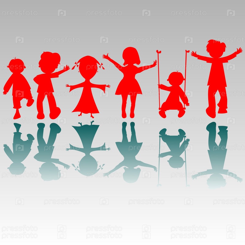 Силуэты счастливых мальчиков и девочек
