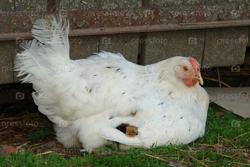 Курица сидит с птенцами