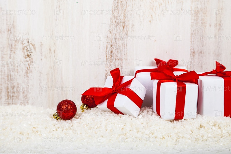 Подарки с красными бантами на снегу