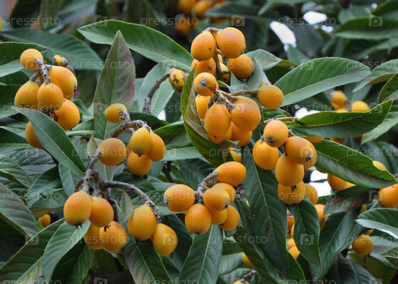 Созревшие плоды мушмулы крупным планом