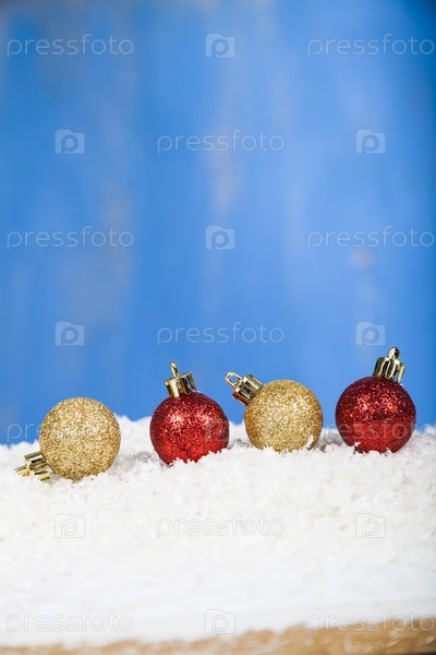 Красные и золотые рождественские шары на снегу