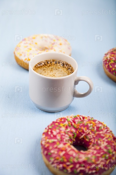 Пончики и чашка кофе