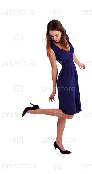 Красивая девушка в синем платье
