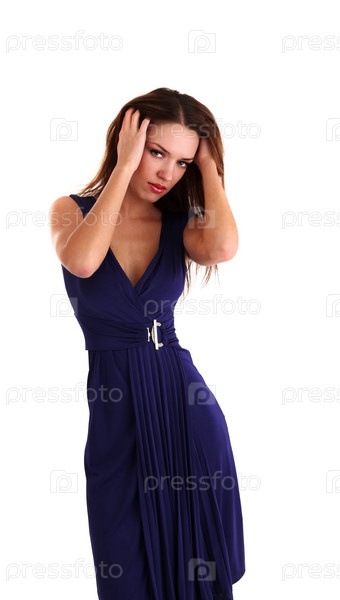 Красивая девушка в синем платье