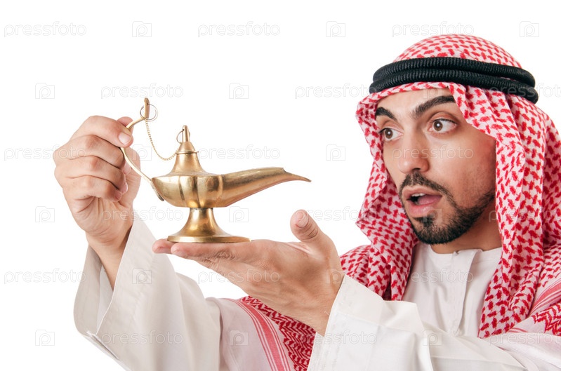 Араб с лампой, изолированный на белом фоне