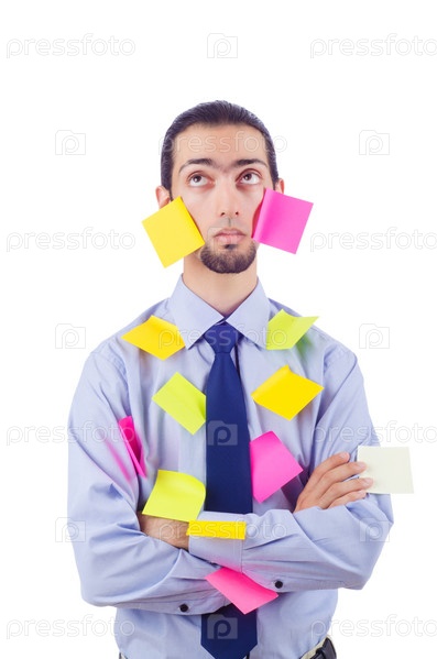 Человек с большим количеством стикеров для напоминания