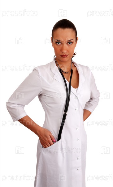 Женщина - врач со стетоскопом на белом фоне