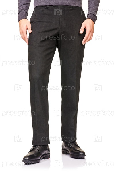 Понятие моды с брюками на белом фоне