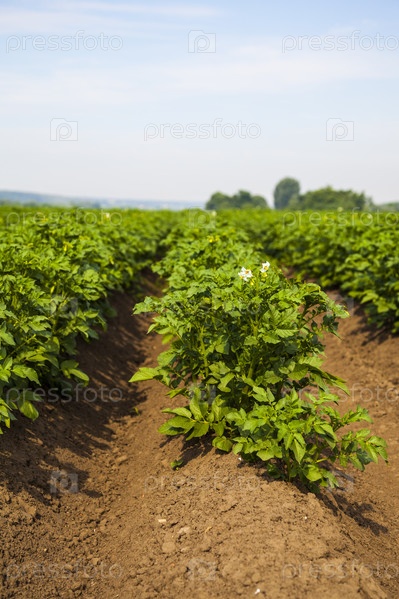 Картофельное поле в солнечный летний день