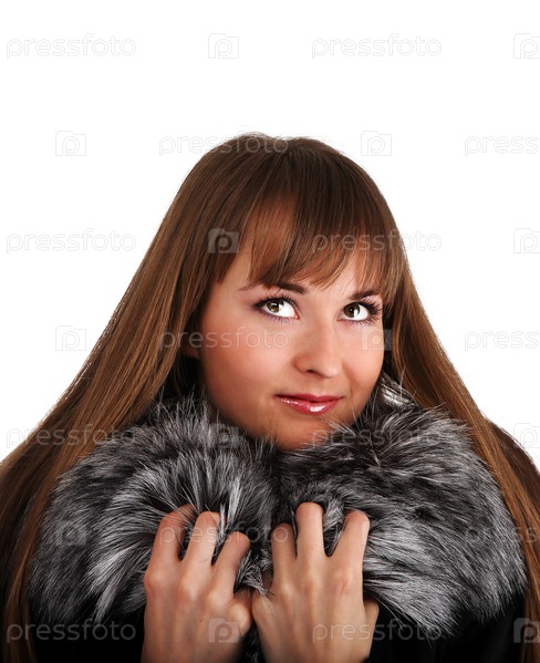 Красивая молодая женщина с меховым воротником