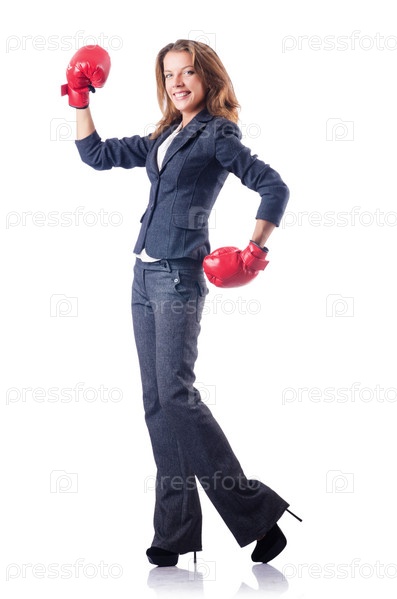 Женщина с боксерскими перчатками на белом фоне