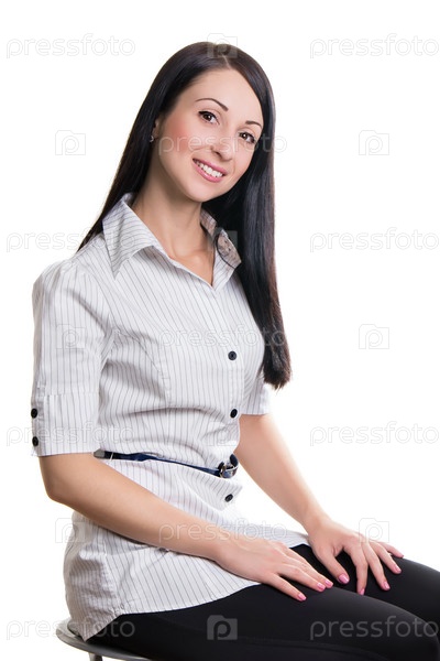 Красивая улыбающаяся брюнетка на белом фоне