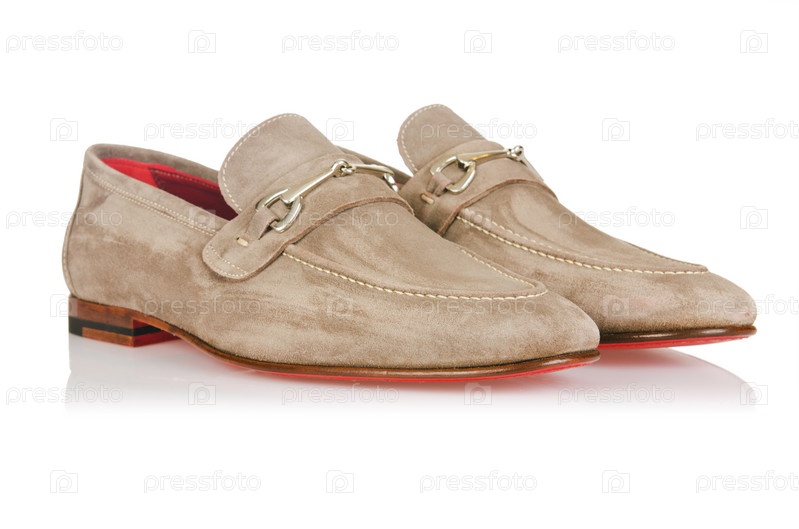Понятие моды с мужской обувью на белом фоне