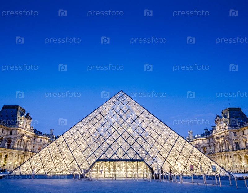 Музей Лувр в Париже на закате 18 августа 2012 года. Ежегодная летняя выставка в Лувре