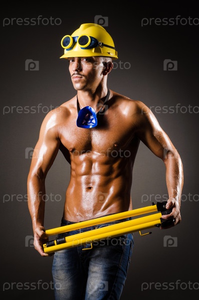 Строительный рабочий в темной студии
