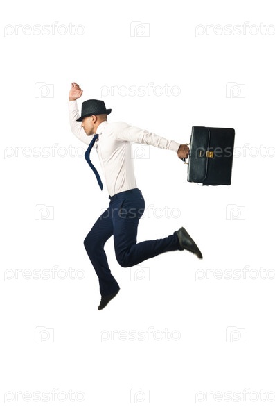 Прыгающий бизнесмен в концепции бизнеса на белом фоне