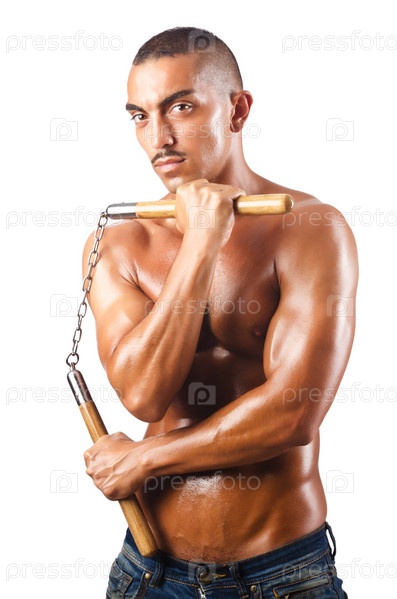 Человек с нунчаками в концепции боевых искусств