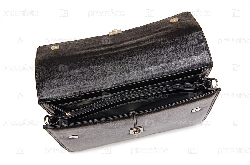Кожаный портфель, изолированный на белом фоне