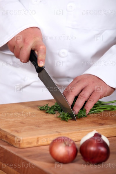 Шеф-повар режет петрушку