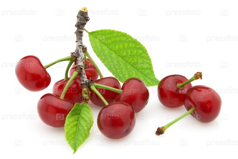Черешня с листьями на белом фоне