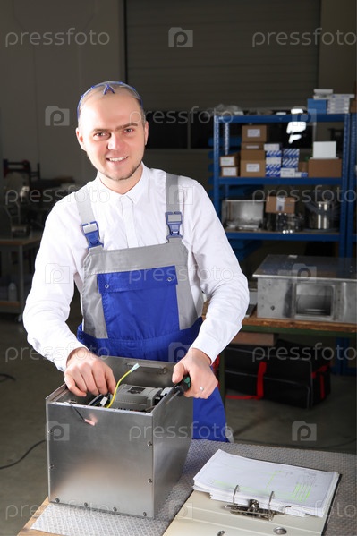 Работник в синем комбинезоне