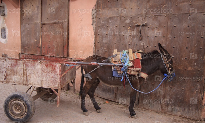 Маленький ослик с тележкой