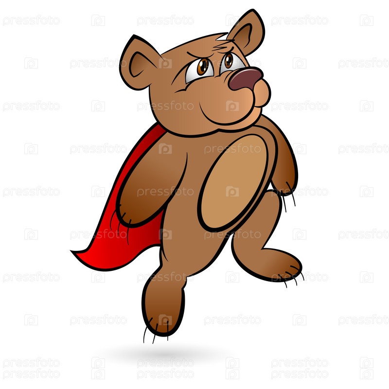 Медведь-супергерой. Иллюстрация на белом фоне для дизайна