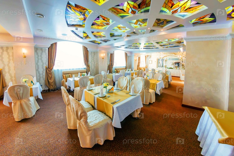 Интрьер ресторана с витражным потолком