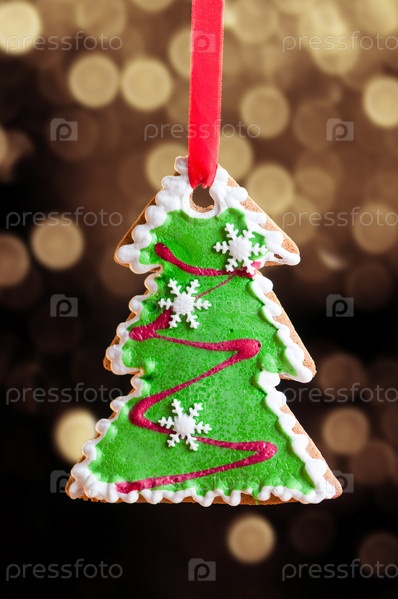 Пряничная рождественская елка на сверкающем золотом фоне
