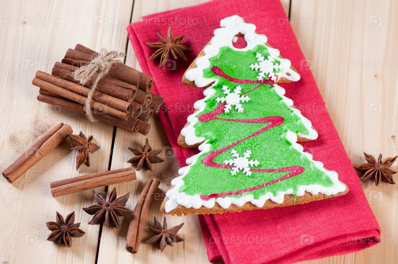 Пряничная елка и специи, вид сверху, студия