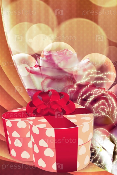 Праздничный фон с подарочной коробкой и розами
