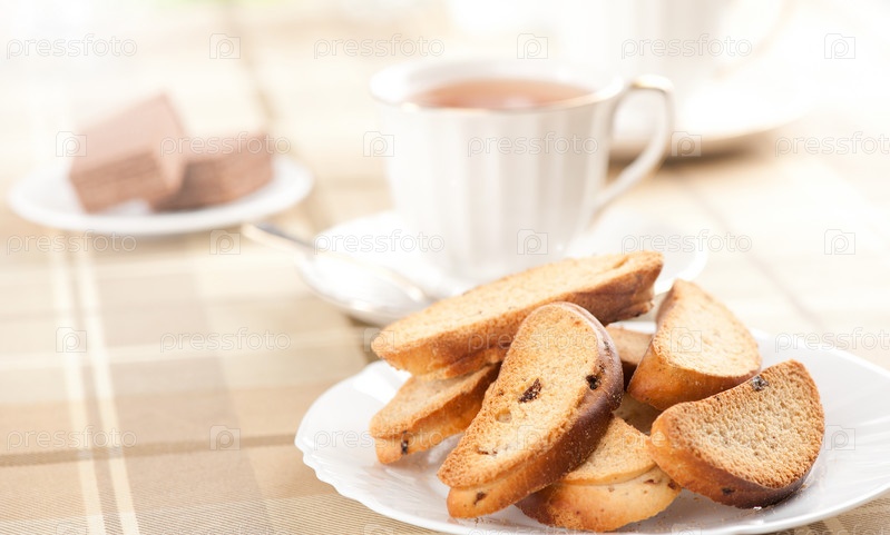 Вкусные сухарики на тарелке
