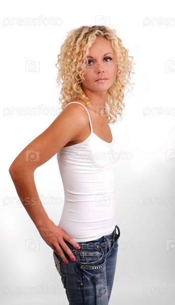 Блондинка в белом топе