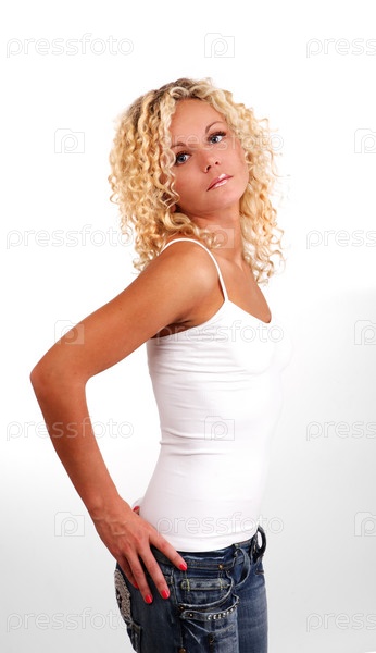 Блондинка в белом топе