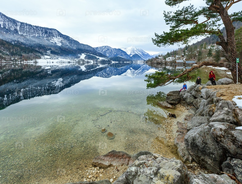 Альпийское зимнее озеро и семья