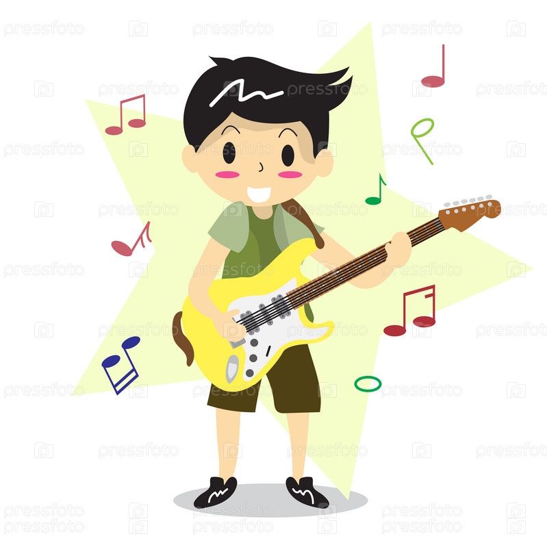 Мальчик играет на электрогитаре