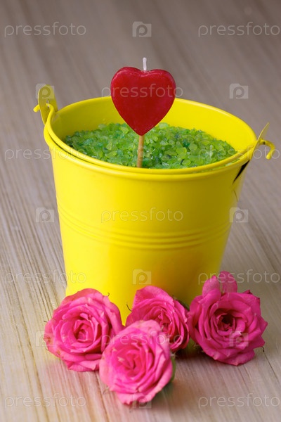 Желтое ведро с зеленой морской солью