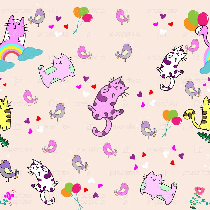 Бесшовный фон с котиками