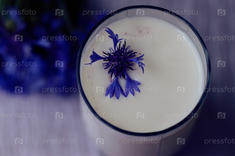 Стакан молока и букет васильков