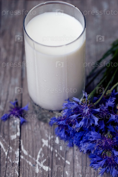 Стакан молока и букет васильков