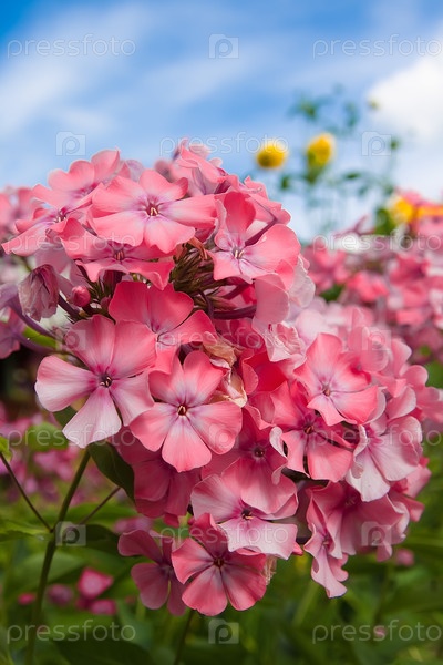 Розовый флокс на фоне голубого неба