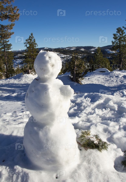 Снеговик на фоне гор