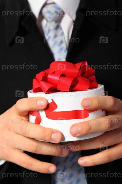Мужчина держит в руках коробку конфет