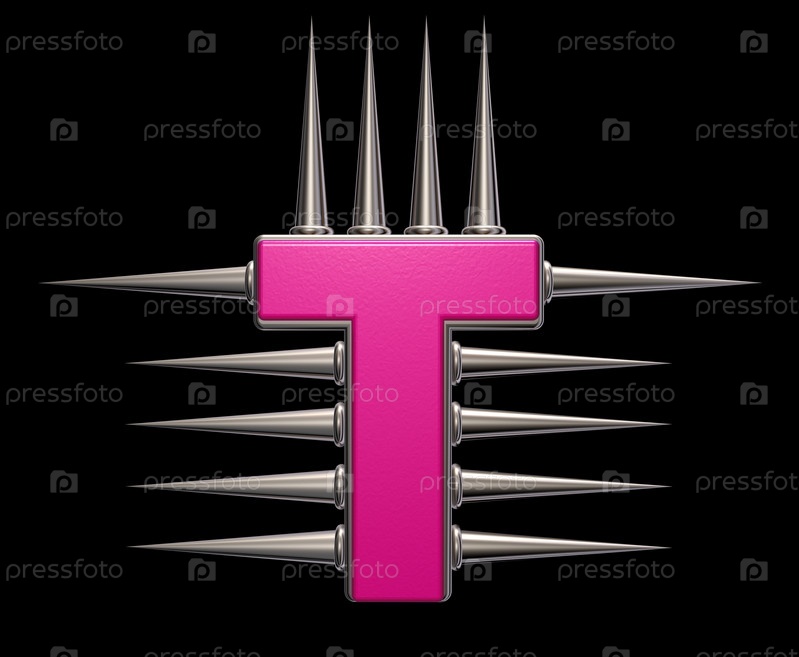 Буква Т с металлическими шипами - 3d иллюстрация