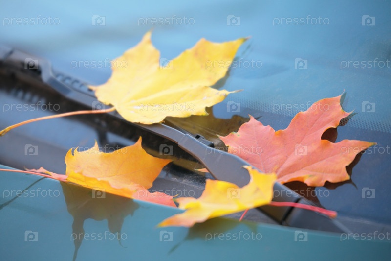 Кленовые листья на капоте автомобиля